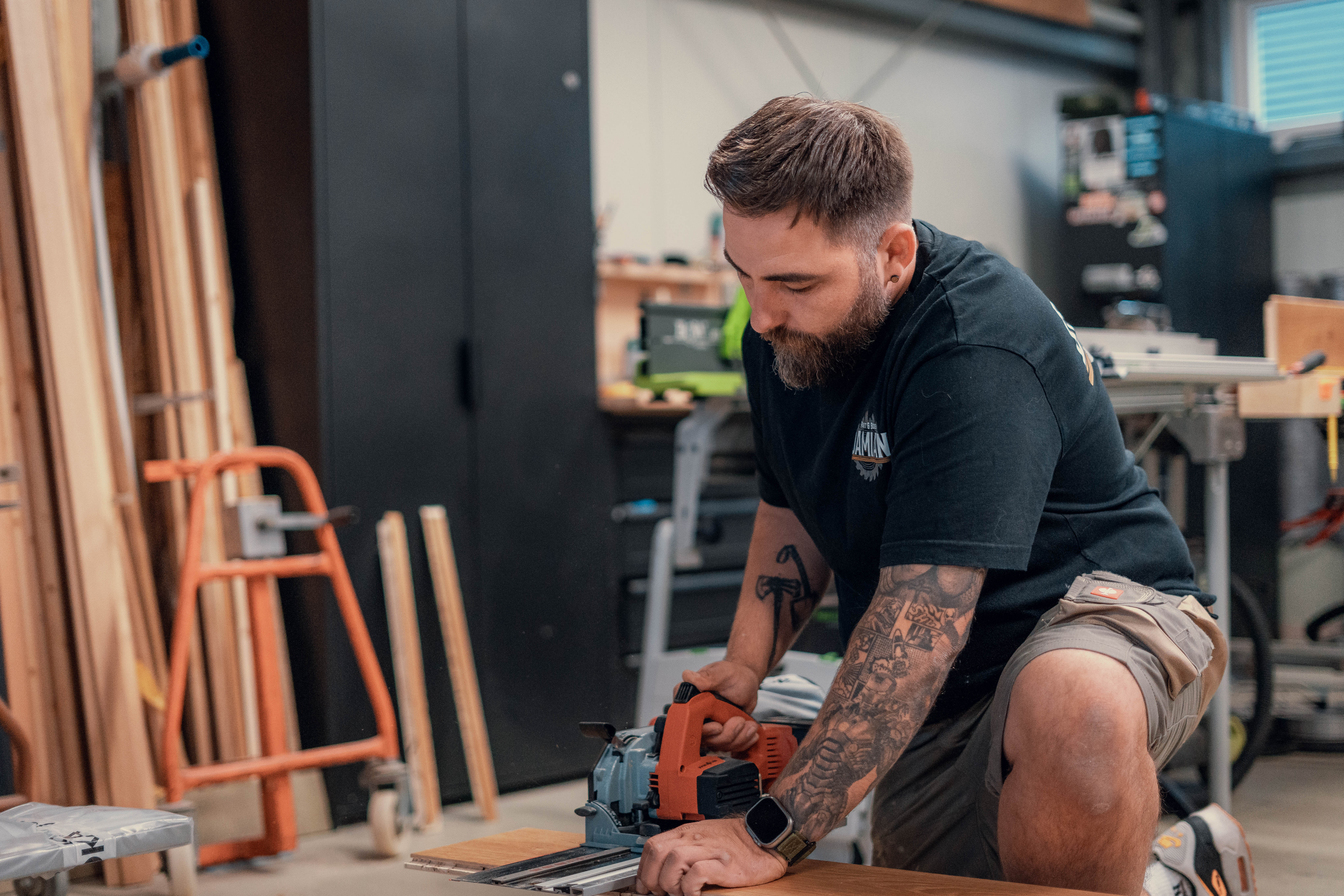 Ich bin Damian. Ich schleife, verlege und färbe Böden. Und das mit Stil, Perfektion und guter Laune.